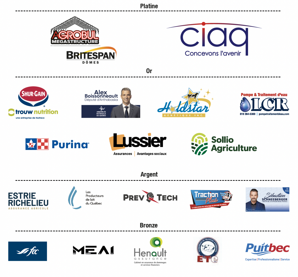 - 19h - Banquet (Coupe des éleveurs Brown Swiss et concours Purina Tout-Québec Jersey)