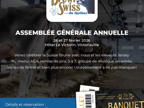 Le club Brown Swiss du Québec et la Société des éleveurs de bovins canadiens sont fiers de vous inviter à venir socialisé lors du BBQ à la...
